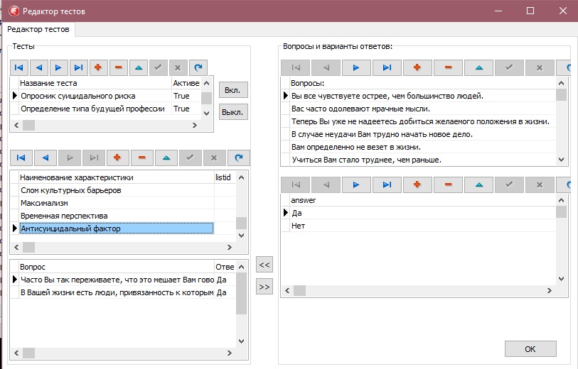 Это приложение я создавал в 2018 году в Delphi XE5 + MySQL (требование заказчика). Техзадание состояло из одного короткого абзаца, поэтому целую неделю пришлось потратить на разработку четкого ТЗ. Методику тестирования пришлось изучать самому, но в итоге вышло приложение, в котором руководитель может сам создавать некоторые психологические тесты, изменять вопросы, и их влияние на результат.