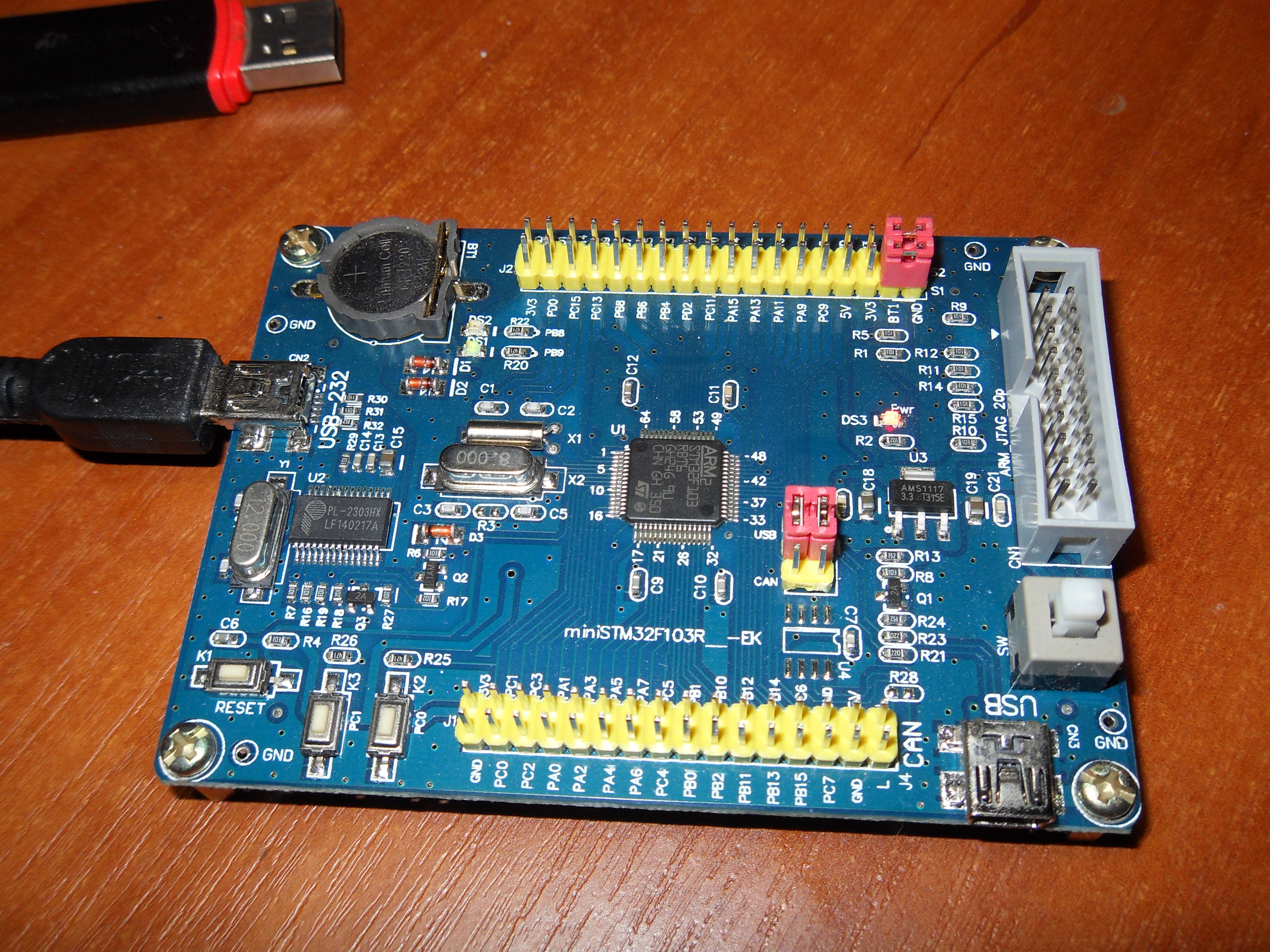 Пришла мне пару месяцев назад из поднебесной отладочная плата STM32F103RBT6. До сих пор с данной архитектурой не сталкивался, поэтому подробно описываю процесс – авось кому пригодится. Итак, статья о том, как работать с отладочной платой STM32 без использования JTAG. Почему без JTAG? А потому что я понятия не имел, зачем он нужен, поэтому и не заказывал. Если же вы решили серьезно заняться данной архитектурой – лучше всё-таки прикупите что то вроде ST-Link/v2 – внутрисхемный дебаггер, эмулятор, программатор (нужное подчеркнуть). Сам такой штукой не пользовался, но судя по названию – очень удобная вещь.